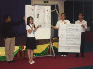 Chaktumouk National Theatre provided the opening ground for service-learning. Jeannie Kim-Han, Institutional Leader of the Seminar, talked about the symbolism of Chaktumouk. “It represents the four faces of the river, where all the rivers meet at once. This embodies the oneness of Cambodia.” Now we must show how important it is to give back to our community.