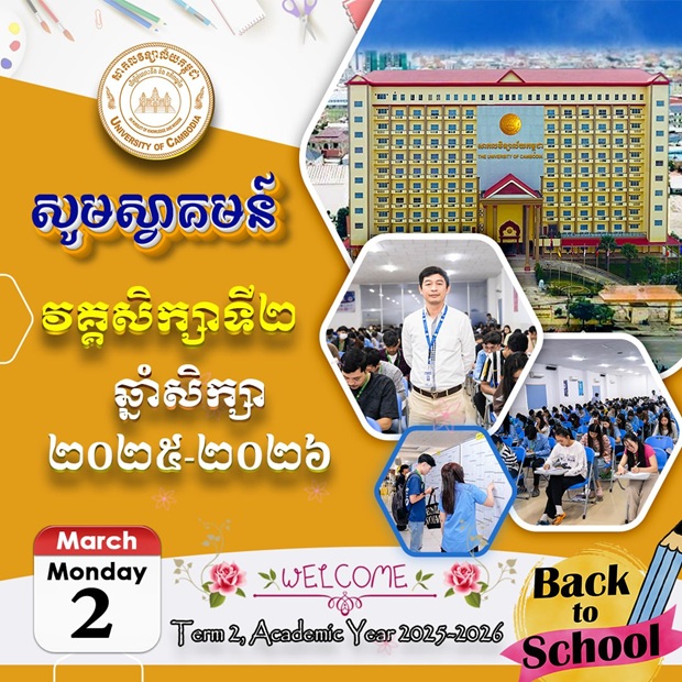 On March 11, 2026, Soft Skills and Leadership Development Center (SSLDC), in cooperation with the Office of International Affairs (OIA) of The University of Cambodia, conducted the New Zealand Scholarship Information Session.Welcome all students to the First_Day of Weekend class for Term 2, Academic Year 2025-2026, on March 07, 2026. You will truly feel the excitement of learning and meeting new friends on the UC campus.Welcome all students to the​ Fifth day of class for Term 2, Academic Year 2025-2026, on March 06, 2026. You will truly feel the excitement of learning and meeting new friends on the UC campus.