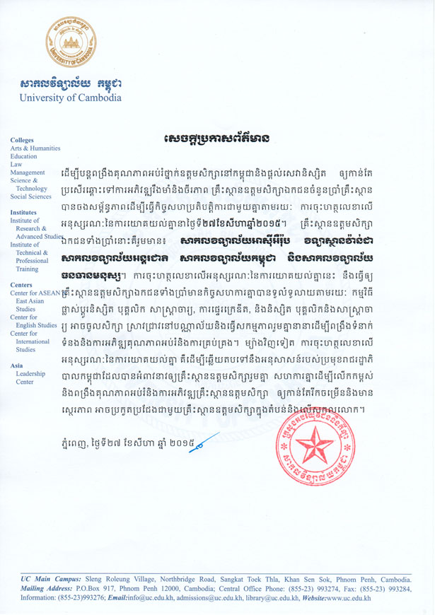 | Copyright © 2003 - 2022 The University of Cambodia (UC). All rights reserved. | ||||
