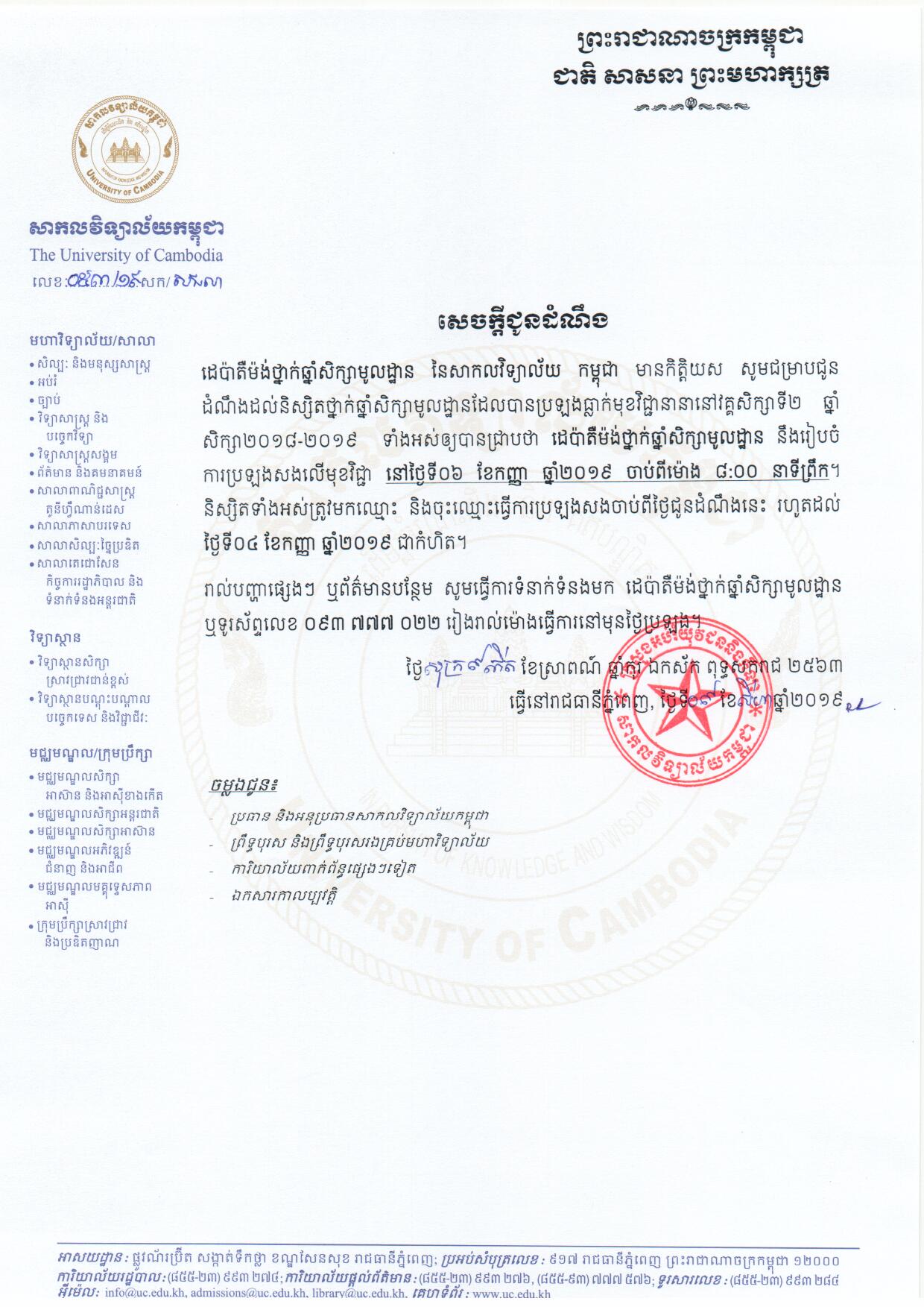 Announcement on Foundation-Year Students Re-sit Exam on September 06, 2019