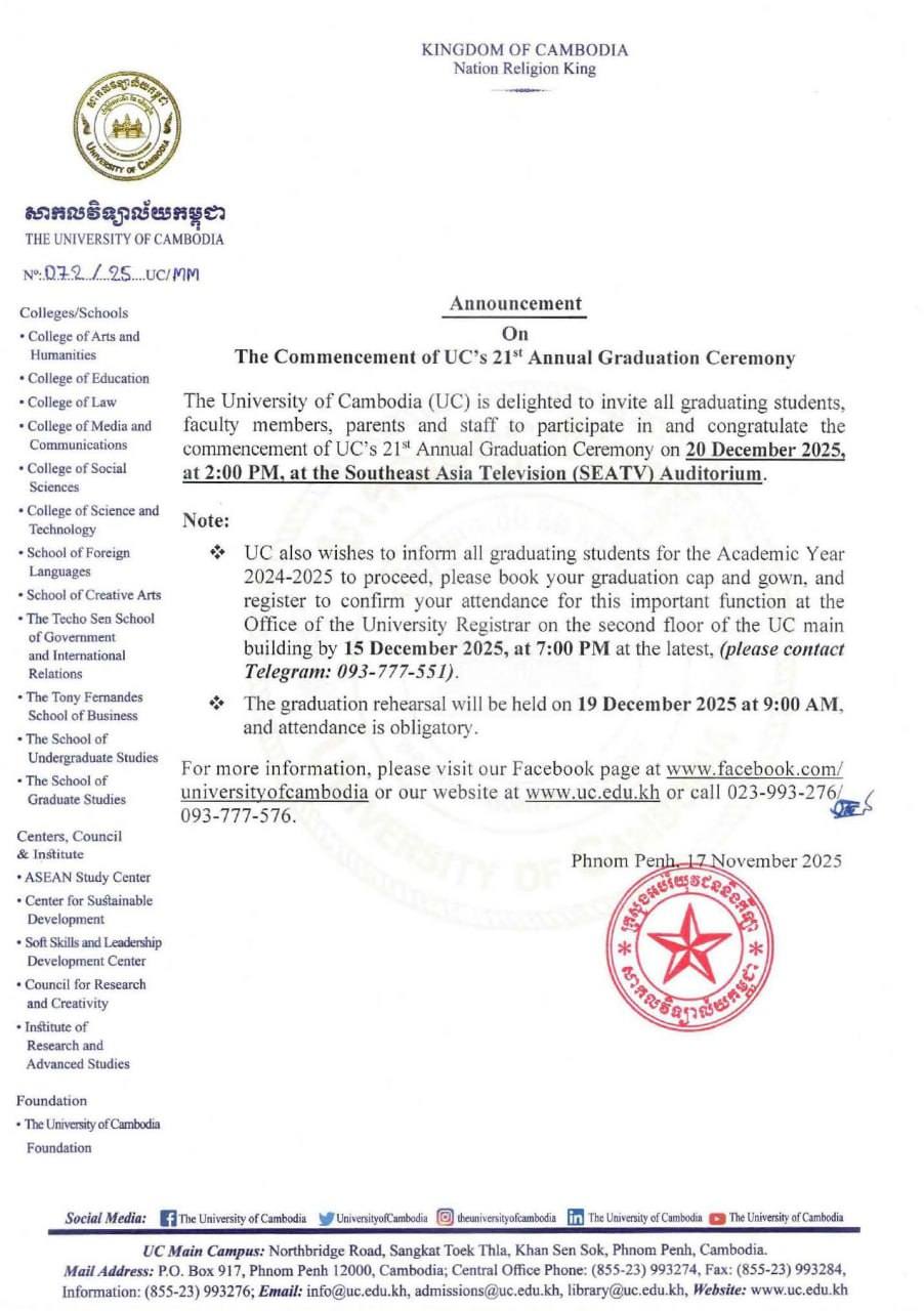 Announcement on the Commencement of UC's 21st Annual Graduation Ceremony
