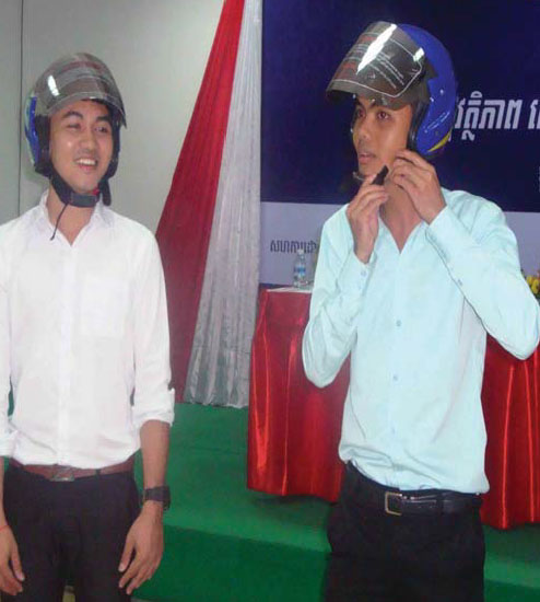 After short welcome speeches from Mrs. Som Serivath and Mr. Sim Santran, a speaker from Cambodian Red Cross presented a photo presentation on the real situation of traffic accident in Cambodia. Towards the end of the presentation the Cambodian Red Cross representative illustrated how to properly use safety helmets to all the participants. A comedy show on “advantages of a helmet” helped engrain the workshop’s message on the importance of awareness of traffic laws. At the close of the workshop Red Bull Company provided 150 safety helmets to participants.