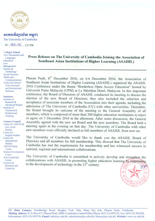 | Copyright © 2003 - 2024 The University of Cambodia (UC). All rights reserved. | ||||