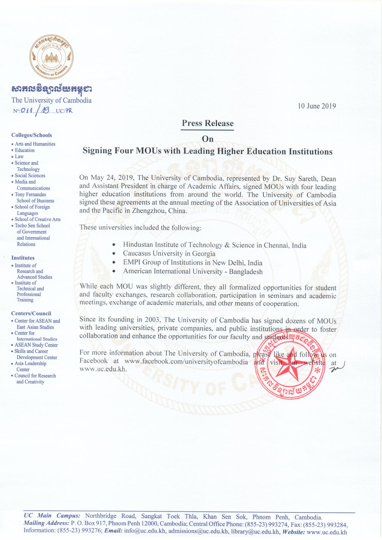 Press Release On Signing Four MOUs with Leading Higher Education Institutions