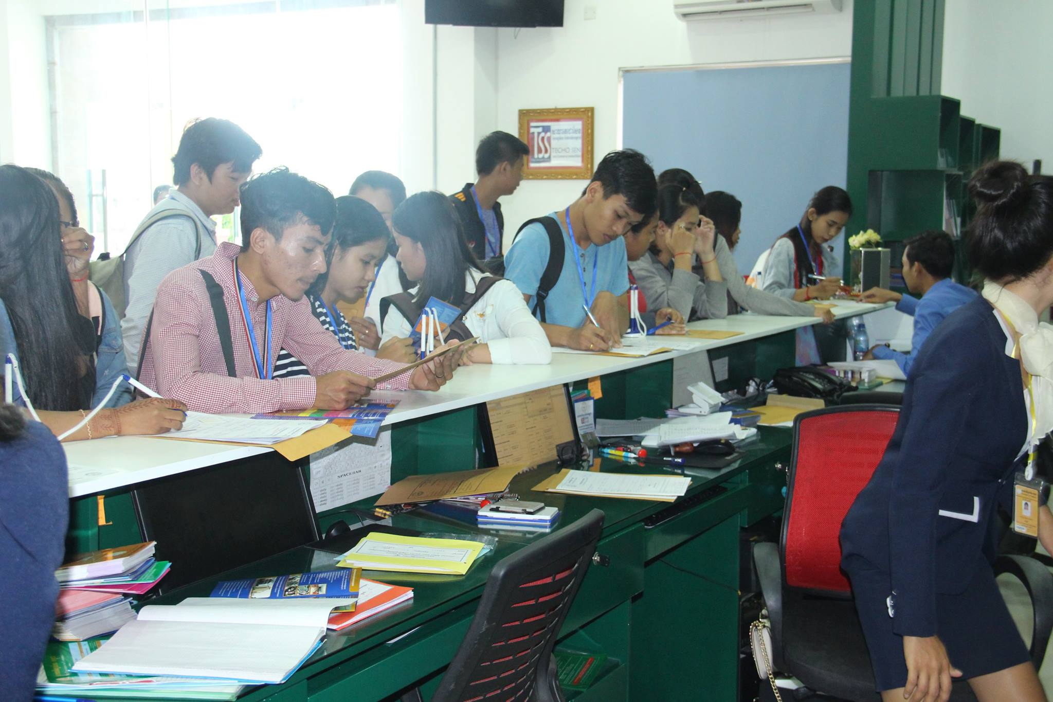 ភ្នំពេញ ថ្ងៃទី ២៤ ខែ តុលា ឆ្នាំ ២០១៧ សកម្មភាពសិស្សកំពុងបំពេញពាក្យ និងចុះឈ្មោះប្រលងអាហារូបករណ៍នៅសាកលវិទ្យាល័យកម្ពុជា។