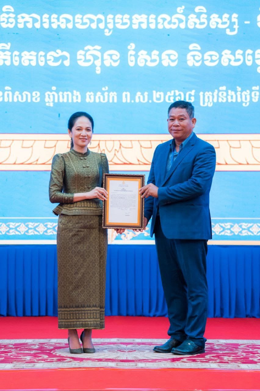 កាលពីថ្ងៃសុក្រ ២រោច ខែពិសាខ ឆ្នាំរោង ឆស័ក ព.ស២៥៦៨ ត្រូវនឹងថ្ងៃទី២៤ ខែឧសភា ឆ្នាំ២០២៤ បណ្ឌិត អុី រតនា សាកលវិទ្យាធិការរងទទួលបន្ទុកសិក្សាតំណាង លោកជំទាវ ឃឹម រ៉ានី ប្រធានស្តីទីនៃសាកលវិទ្យាល័យកម្ពុជា បានអញ្ជើញចូលរួមក្នុងកម្មវិធីសំណេះសំណាល និងពិសាអាហារសាមគ្គីរបស់គណៈកម្មការអាហារូបករណ៍ សិស្ស-និស្សិតក្រីក្រ សម្តេចអគ្គមហាសេនាបតីតេជោ ហ៊ុន សែន